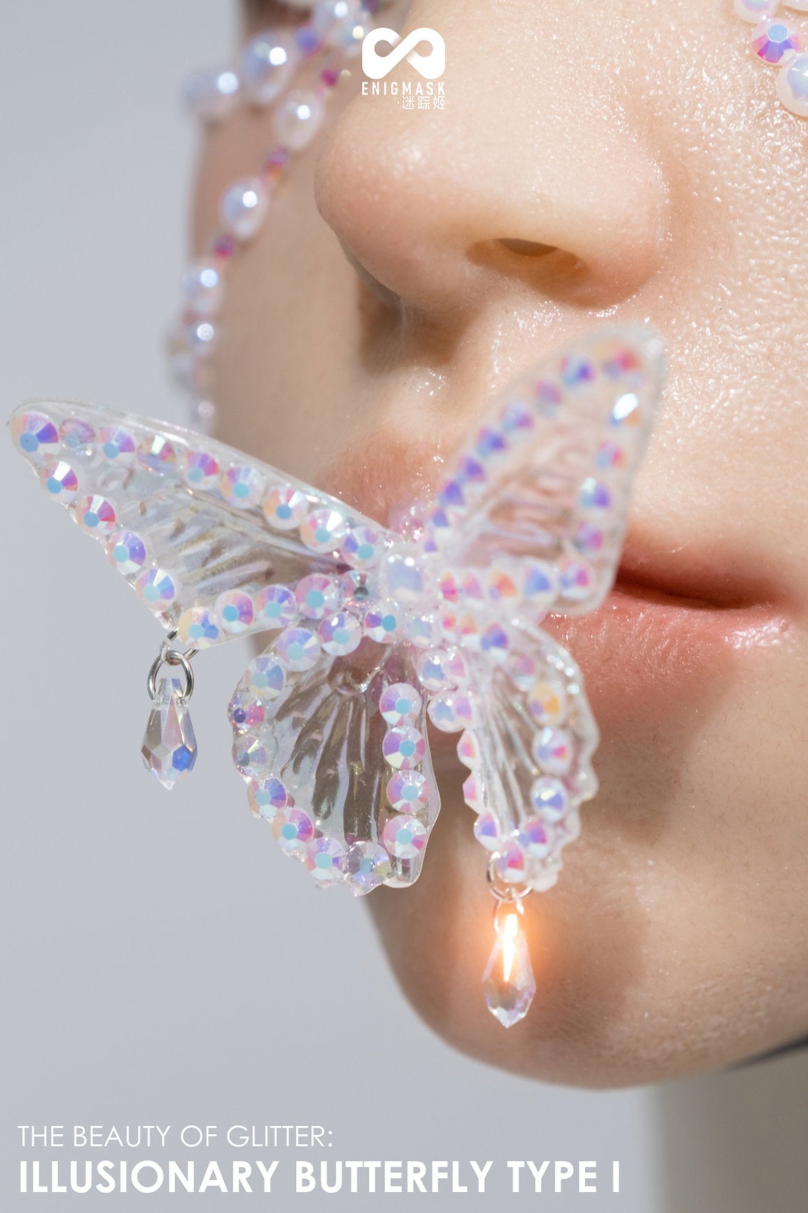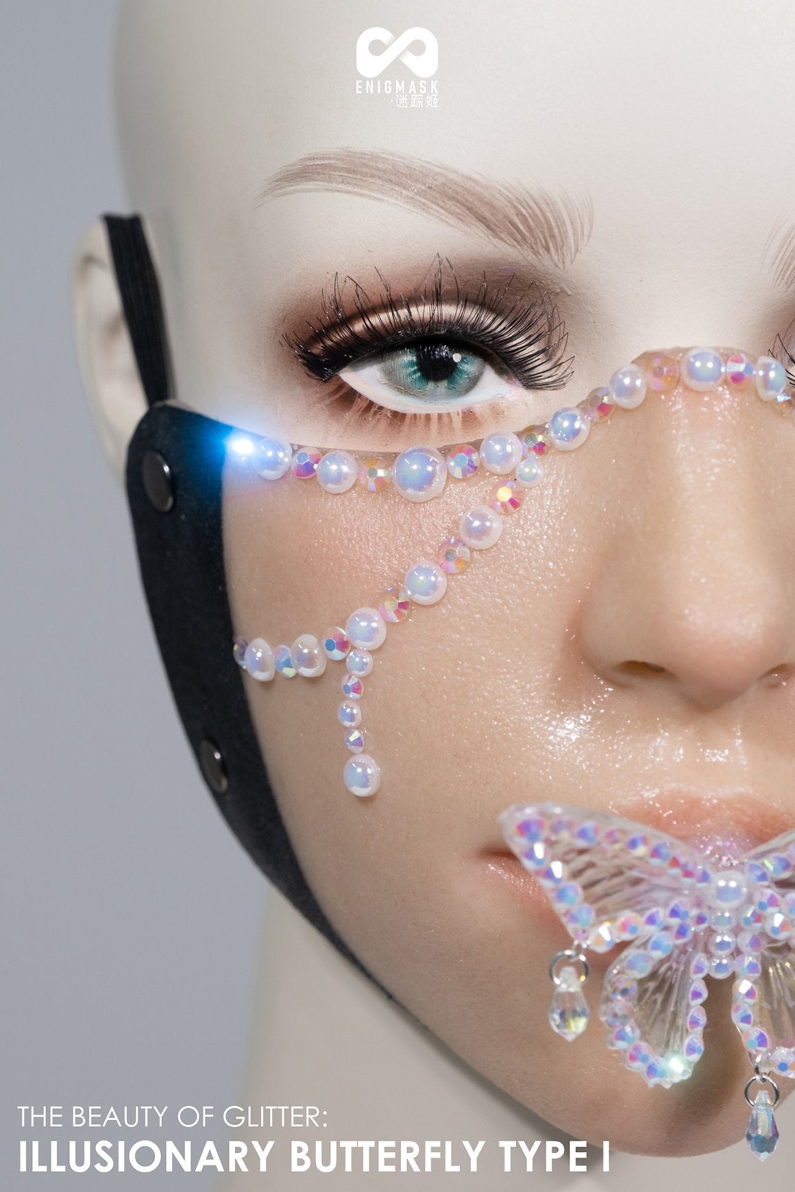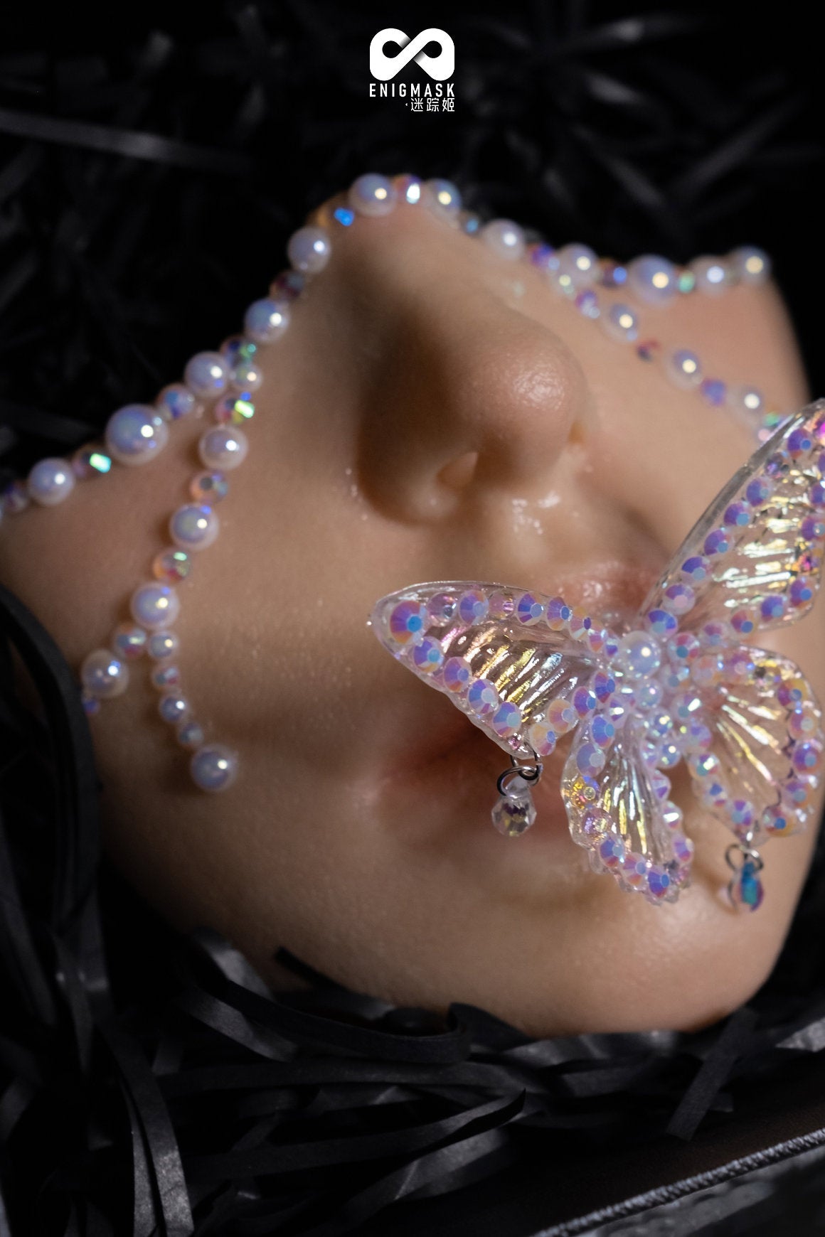 Enigmask ist aus hochwertigem Silikon gefertigt und sorgt für eine bequeme und atmungsaktive Passform, die ein längeres Tragen ohne Beschwerden ermöglicht. Diese Kollektion eignet sich gut für Menschen mit Fetischen oder Personen, die Anonymität vor der Gesellschaft suchen. Diese Masken bestehen aus mittelhartem Material, haben realistische Nasen- und Lippenformen und eine verträumte, illusorische Qualität und verfügen über ein 3D-Gesichtsdesign, das Ihre Gesichtszüge betont und wunderbar sitzt. Unter dem Licht der Lichter, eingetaucht in den bezaubernden und anmutigen Tanz der Schmetterlinge, verwandelt sich eine fantastische Traumlandschaft in eine schillernde Realität. Diese kokette und hinreißende Szene vereint künstlerische Elemente, um Eleganz und ästhetische Schönheit zu präsentieren.