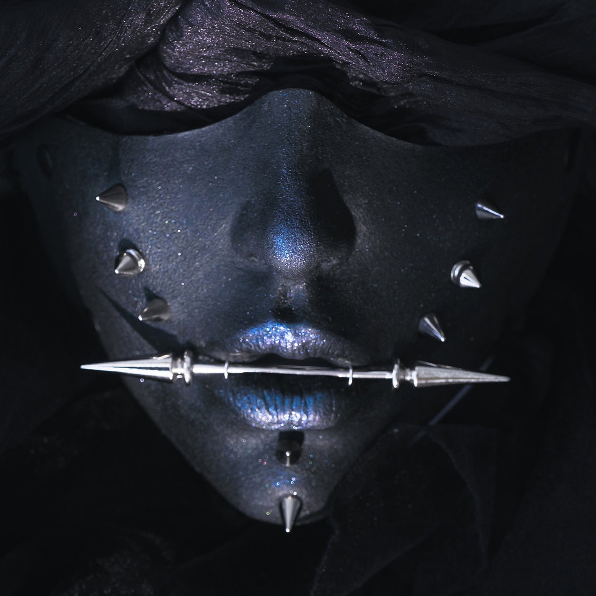 Elegant makeup techniques simulate the textures of the nose and lips.