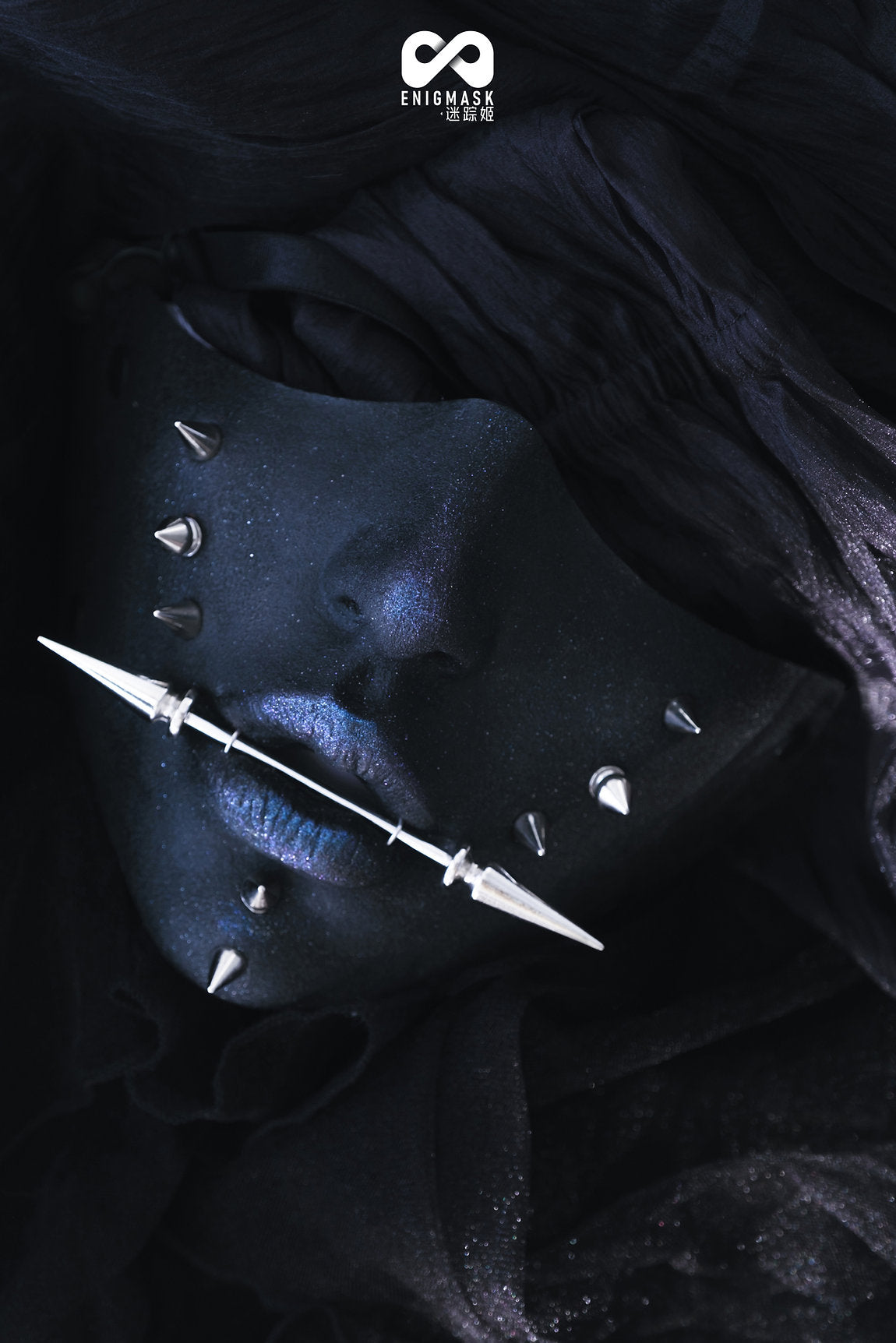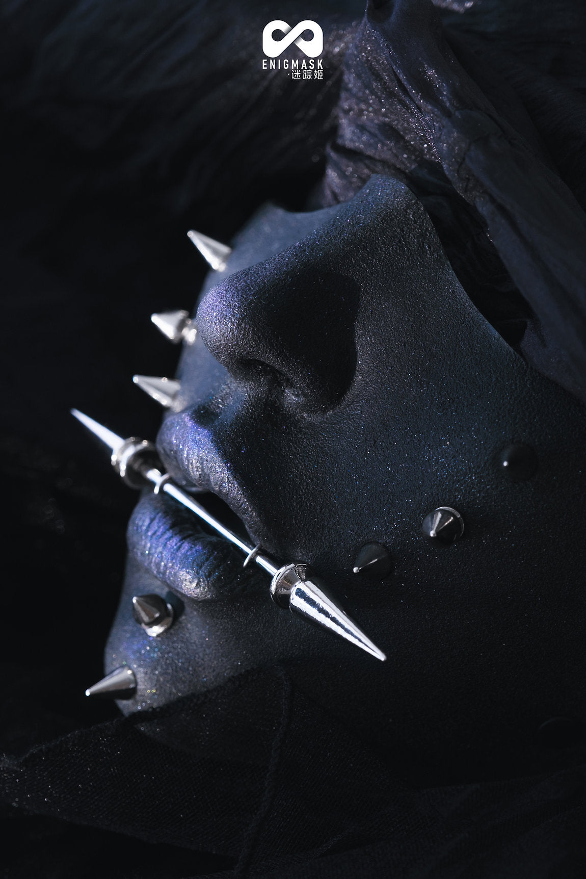 The half-face design accentuates facial contours, emphasizing pure beauty.