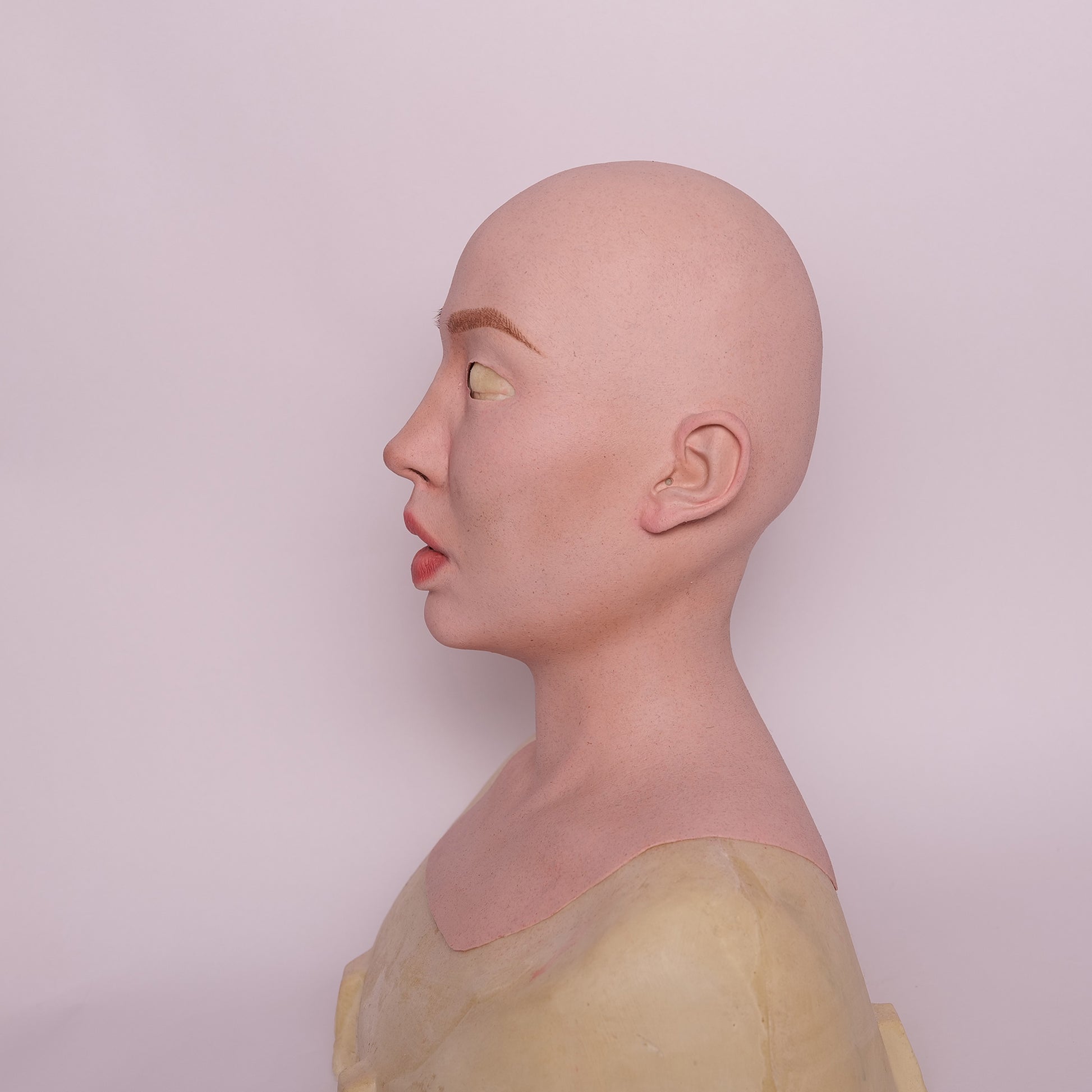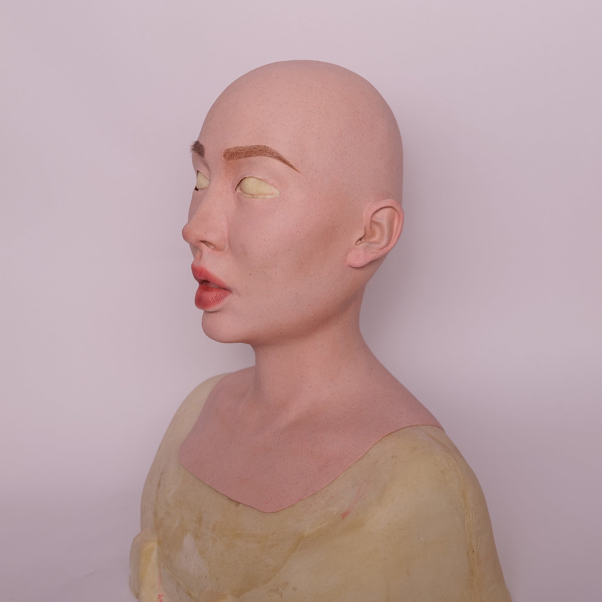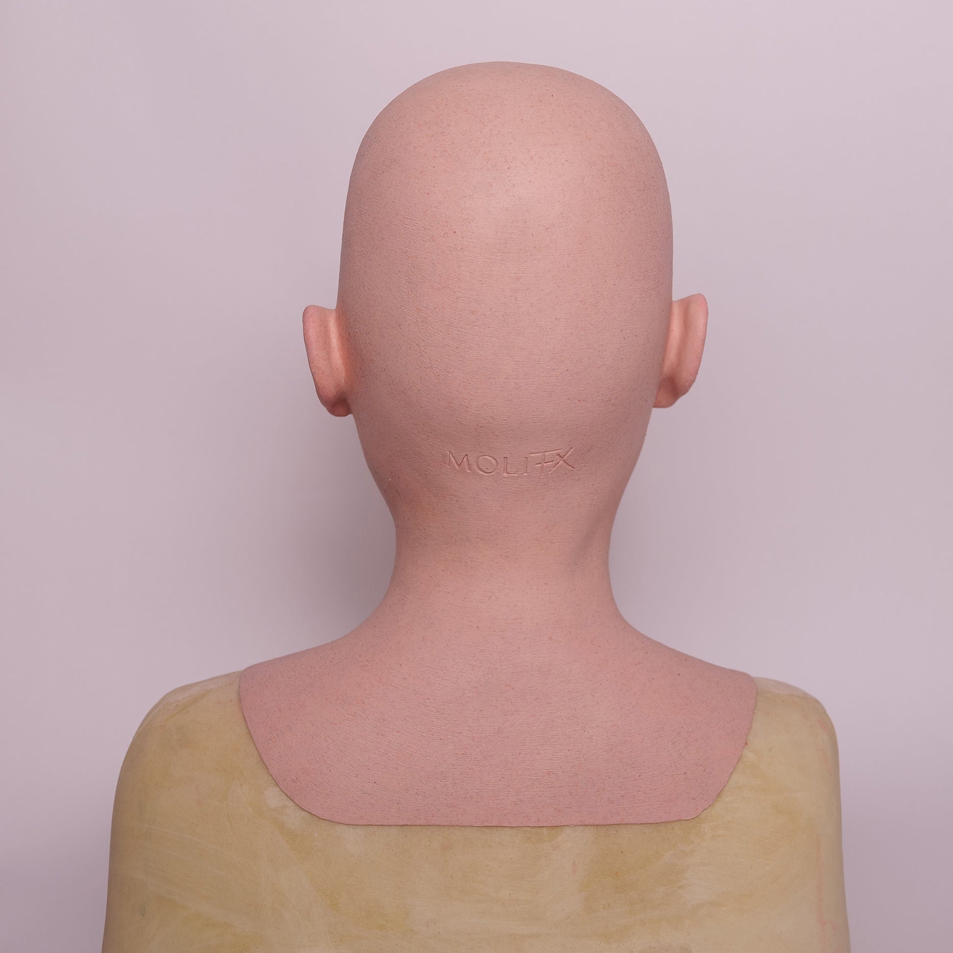 "Molly S" is made of premium raw silicone material, showcasing an unparalleled realistic appearance and performance. Developed with SFX techniques, she boasts impeccable skin details, including realistic pores and eye rims. The "S" stands for small, making Molly S an ideal fit for a smaller head circumference. It meets the standards of special effects makeup, featuring eye rims with a thickness of less than 0.5 mm.