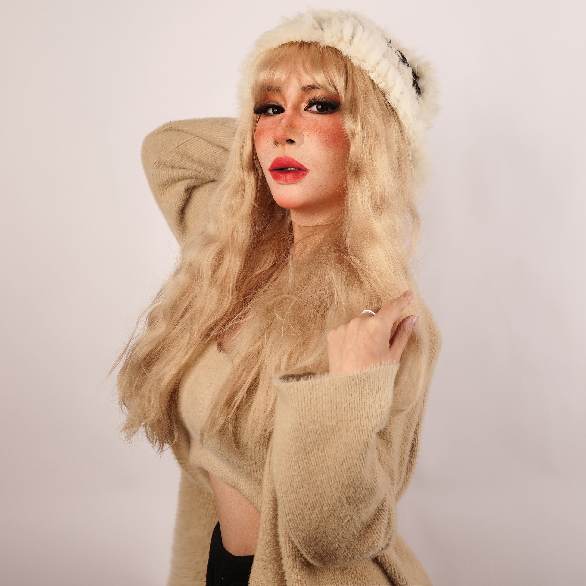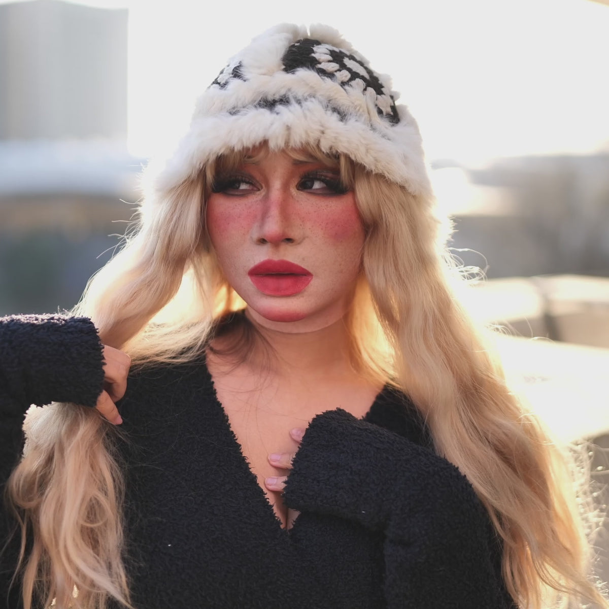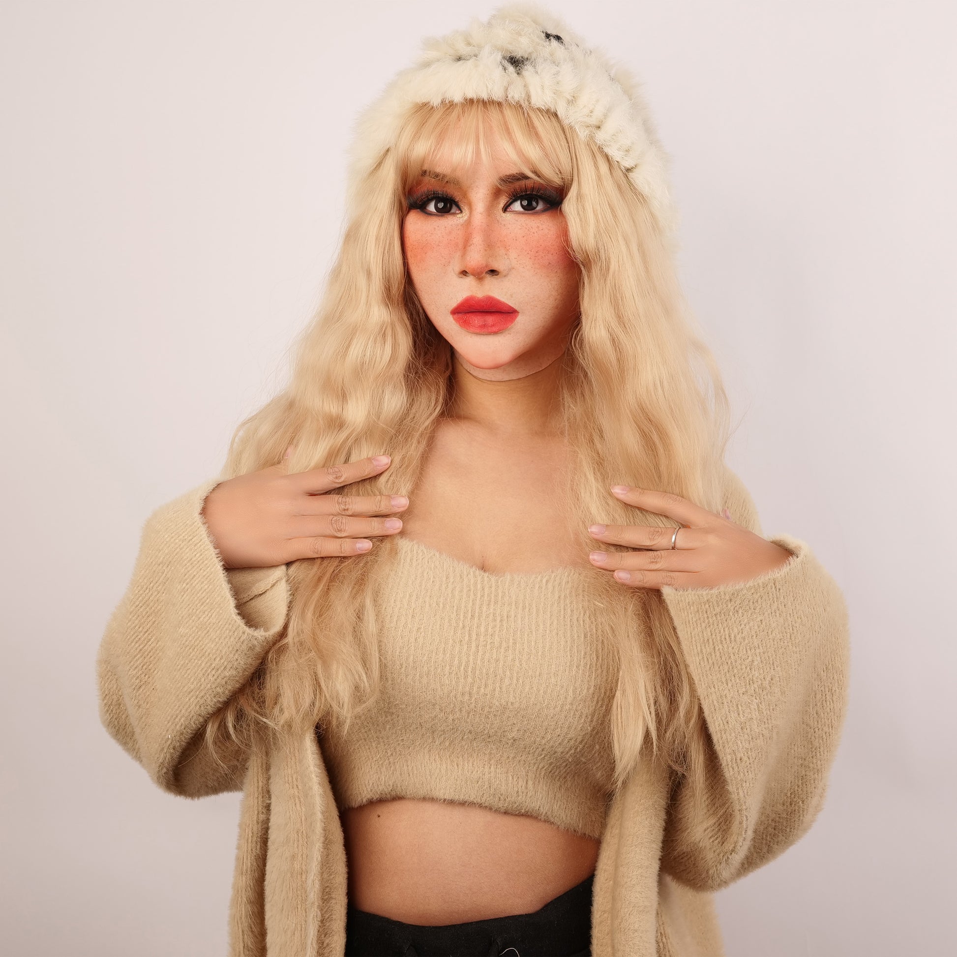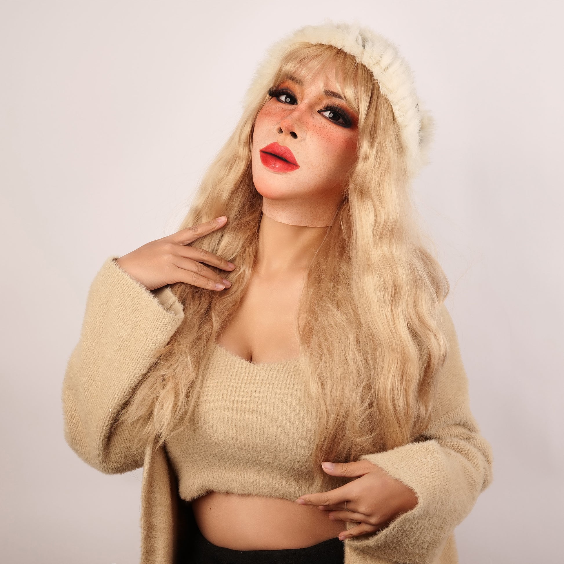 "Molly S" is made of premium raw silicone material, showcasing an unparalleled realistic appearance and performance. Developed with SFX techniques, she boasts impeccable skin details, including realistic pores and eye rims. The "S" stands for small, making Molly S an ideal fit for a smaller head circumference. It meets the standards of special effects makeup, featuring eye rims with a thickness of less than 0.5 mm.