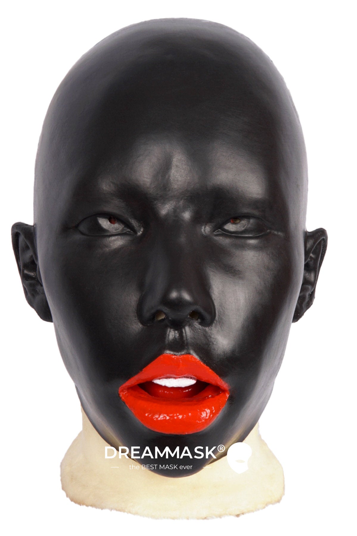 Laced back and pull over options are available and suitable for different head circumferences. The mask features realistic full lips, forcing the mouth to open, making it as sexy as ever. She is a beautiful black silicone, a perfect fit for your latex suit.