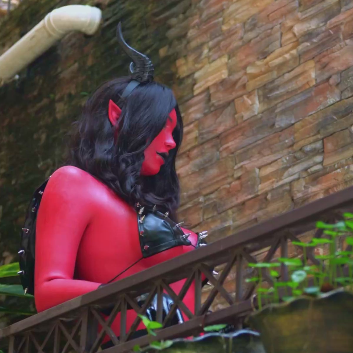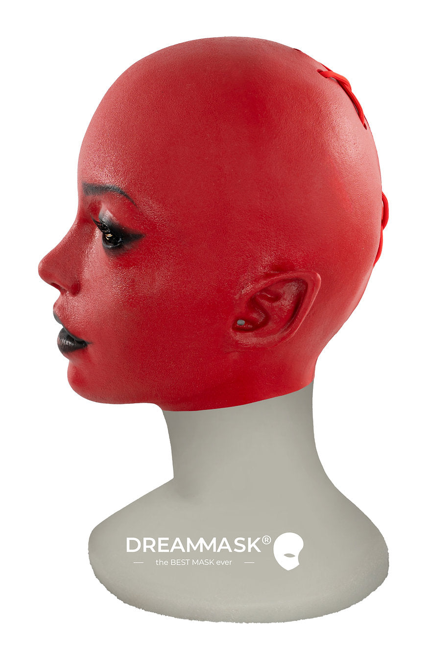 Ruby features striking red skin, intense black eyeshadow, and dark, alluring lips, capturing the essence of a dangerously captivating desire. A combination of soft and hard silicone was used on her to satisfy your darkest, most wicked thoughts.